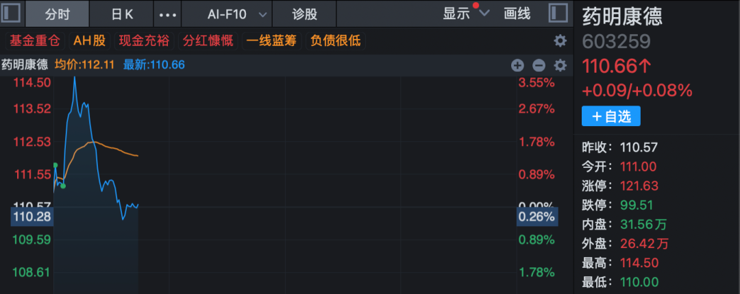 4月29日开盘,A股药明康德继续冲高,一度涨超3%。