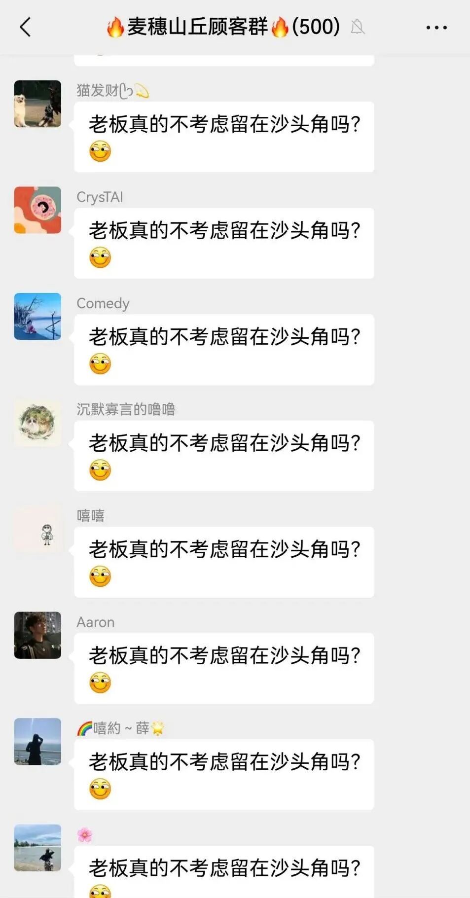 网友此前在群内自发排队挽留店主